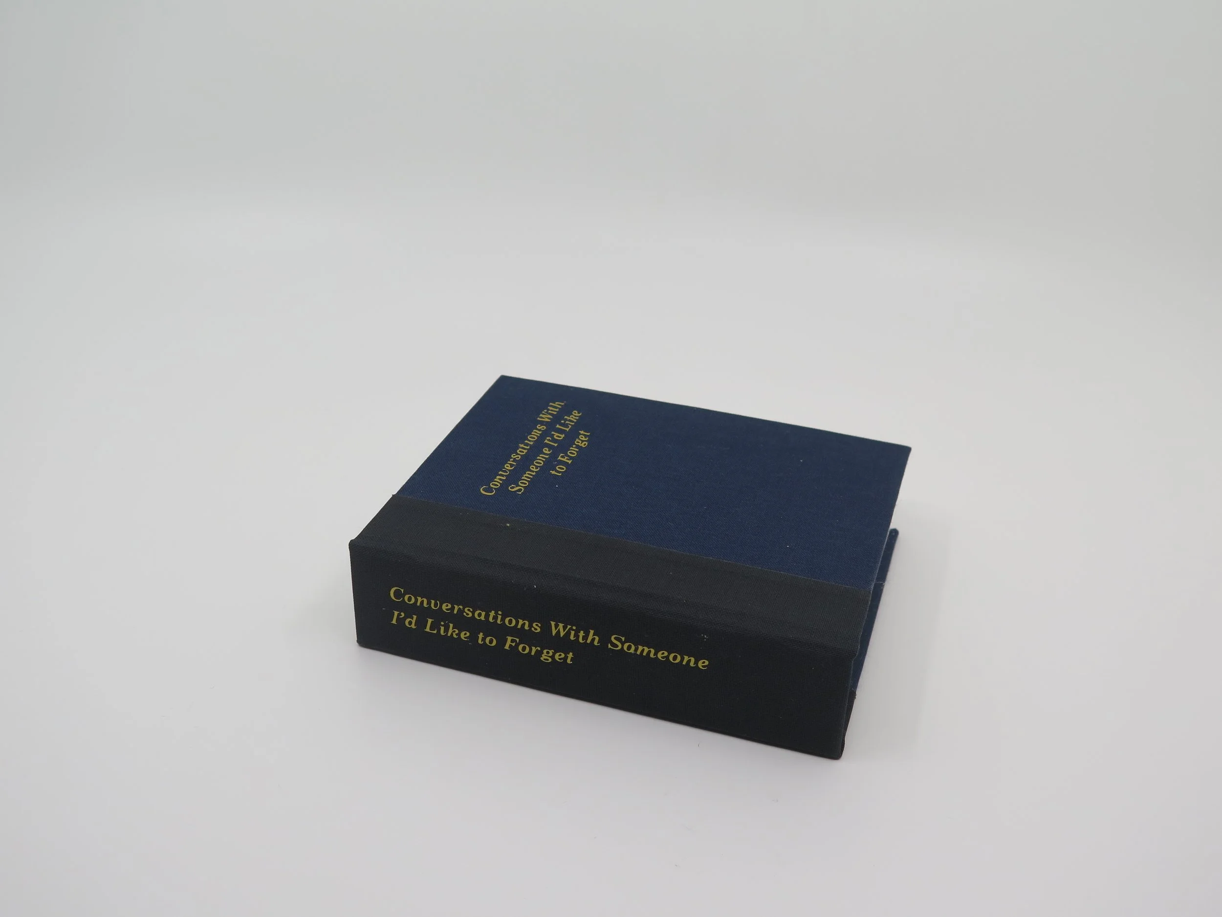 From Reading Room series, this book was intended to explore concepts of negative memories through book structure. By binding a book, writing in it, and removing the pages, the book becomes a physical representation of the desire to forget certain people or experiences.